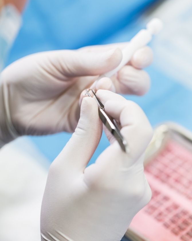 Les unités folliculaires sont extraites une par une depuis la zone donneuse sous anesthésie locale. La durée de l’intervention varie en fonction du nombre de greffons à prélever. Les greffons sont ensuite soigneusement contrôlés et triés avant l’implantation.
